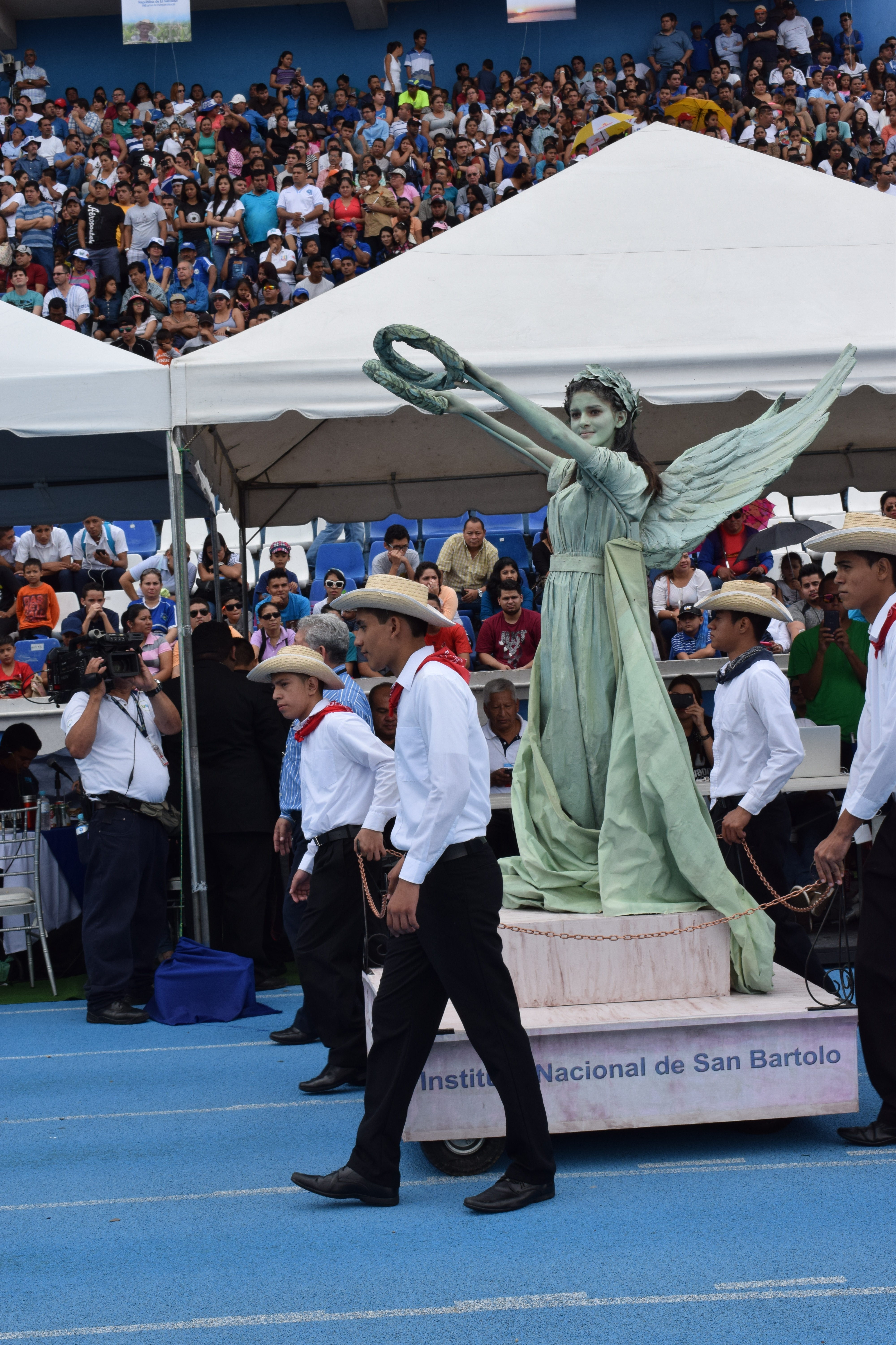 Y sí, en medio de toda aquella parafernalia también recordé esa crítica común que mis amigos más letrados lanzan cada 15 de septiembre: ¿Independencia de qué?, No hay nada que celebrar, Este país es un chiste, Seguimos siendo esclavos de… y ese tipo de reflexiones bastante simplistas. Pero en ese momento uno lo piensa de verdad: hay un estadio lleno de personas vestidos con los colores de su bandera; a menos de 20 metros se encuentra el presidente con su gabinete, y todos los más altos líderes del país, celebrando esto a lo que llamamos patria. Hay gente de todas partes del mundo. Hay prensa de todas partes del mundo. Hay niños con la cara ilusionada. Hay gente que sin dudarlo daría la vida por su tierra… ¿Es mentira la patria? ¿De verdad estamos tan jodidamente equivocados? ¿Es tan descarada la historia oficial? ¿Por culpa de la patria es que hay más militares que estudiantes?